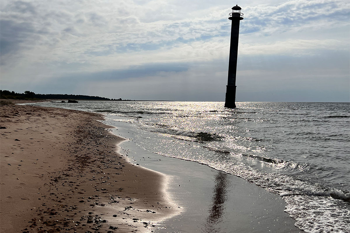 Nach eineinhalb Tagen Hauptstadt wollten wieder nach Estland (unsere Gastgeberin in Männiku Metsatalu meinte, Tallinn ist nicht Estland, Tallinn ist eine Großstadt). In der verbleibenden Zeit wollten wir die großen Ostseeinseln Hiiumaa und Saaremaa in Westestland besuchen. Da kann man mit der Autofähre hinfahren. Die Inseln (Hiiumaa: etwa 55 x 50 km, Saaremaa: etwa 90 x 40 km) lassen sich auch hervorragend mit Fahrradtouren erkunden (wir hatten unsere Fahrräder im Auto mitgenommen): kleine nette Orte, viel Wald, endlose Strände und idyllische RMK-Campingplätze. Das sind Campingplätze in schöner landschaftlicher Lage, die von der nationalen estnischen Forstbehörde bewirtschaftet werden. Diese Campingplätze sind tatsächlich kostenlos: und es gibt immer einige Grill-/Feuerstellen (mit schwenkbarem Rost), überdachte Picknicktische, einen Holzvorrat, ein Trockenklo und Abfallcontainer: fertig ist das Camperglück. Auf den beiden Inseln sind wir nach touristischen Wegweisern Fahrrad gefahren oder gewandert. Ein Ziel war dabei, die schönsten Leuchttürme zu „sammeln“. Leider hatten wir dafür nur noch 5 Tage Zeit und mussten uns bald schweren Herzens losreißen und losreisen.