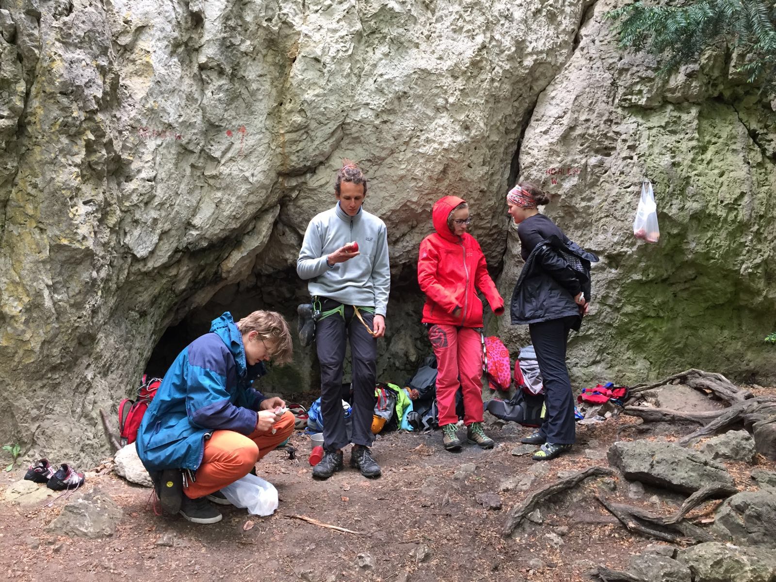 Wir ließen uns davon nicht abschrecken und genossen jede der tollen Routen, welche uns die Fränkische Schweiz bot. Einige der Teilnehmer konnten sich gerade über ihr Prüfungsende freuen, durch das Klettern ihren Kopf von diesen Gedanken befreien und sich voll und ganz auf das Klettern, Kaffetrinken, Kochen und das Reparieren von nicht funktionierenden Gaskochern konzentrieren. Leider ließ die Kälte das abendliche Zusammensitzen unterm Sternendach nicht zu. Wir fanden aber eine andere Lösung: Wir saßen zu siebt in einem der Zelte, das eigentlich für nicht mehr als drei Personen ausgelegt war, aber ausreichend Schutz und Wärme für uns frierende Jugendliche bot.